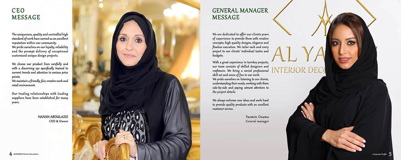 UCT worked with Al Yasmin to ensure an elegant design for their new identity and for the constructed company profile which reflected the high level of elegancy that Al Yasmin provides to their clients. The profile included various images which were a mix of creative images and actual work done by Al Yasmin. This provided a real feel of what Al Yasmin does and made the profile appealing to read when presented.
