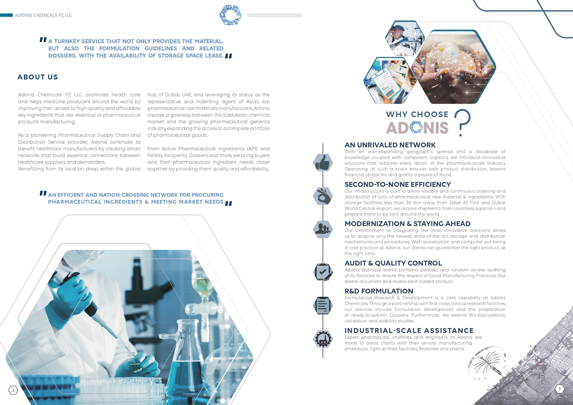 Adonis is a pharmaceutical supply chains and distribution managers, connecting manufacturers with healthcare providers. The company began with a special vision of care and extending help to people around the world by improving their access to affordable and high-quality medicines. Adonis operates from Dubai, UAE, which is a vital central hub, allowing for trade routes across the globe easily.