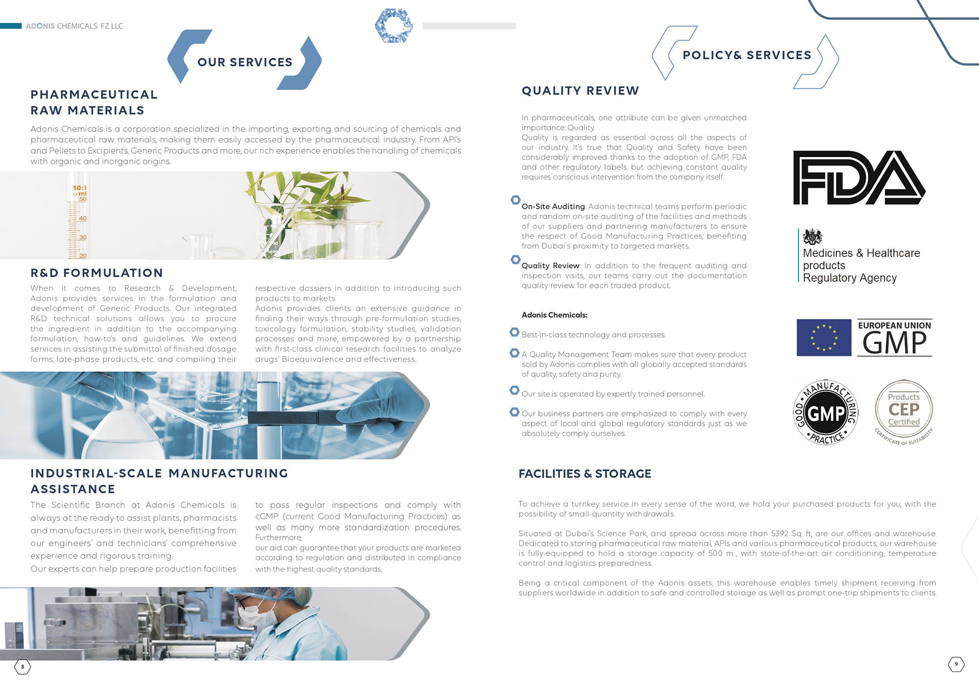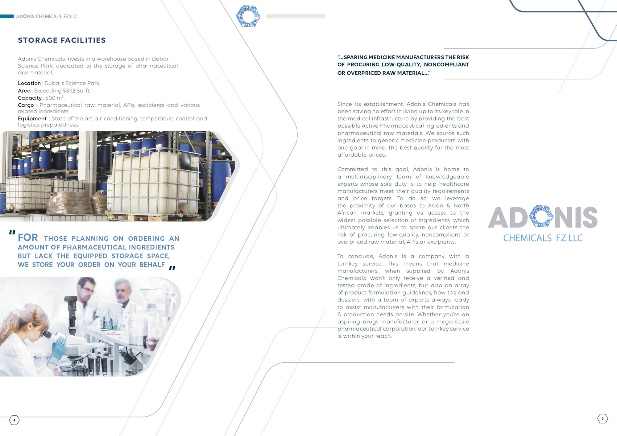 UCT designed a logo for Adonis that properly portrays the story behind their line of their work, cleverly including the letters and a hint of a design related to chemistry and medicine. Building further on that, the company profile was built around the color theme matching what the logo has. It was also necessary to pay special attention to the font-style to be used, as that was important in staying true to brand identity which was established for Adonis. Including the company’s services and several design elements and visual images spread out across the profile and matching their sections, made the profile quite interesting to read and impressed Adonis very much to the point that they recommended UCT to their partners and credited UCT whenever the material was used.