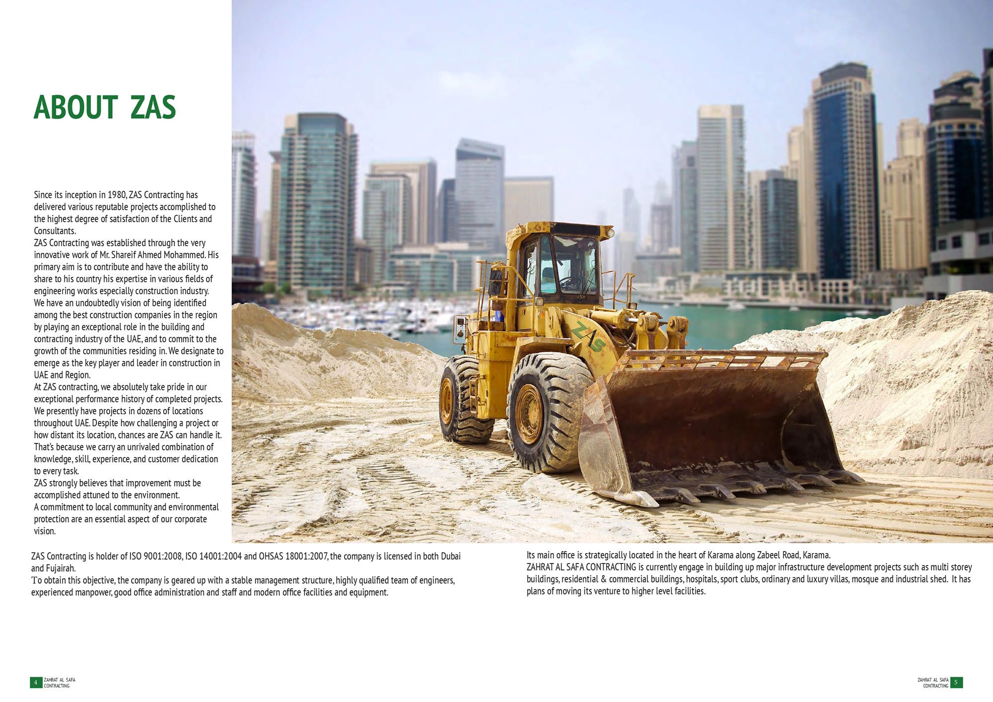 Emerging from the identity package we’ve created for ZAS is a modern company profile that breathes excitement into the readers. We take pride in our success with delivering design and content that highlights the exceptional history of completed projects that span the UAE.
