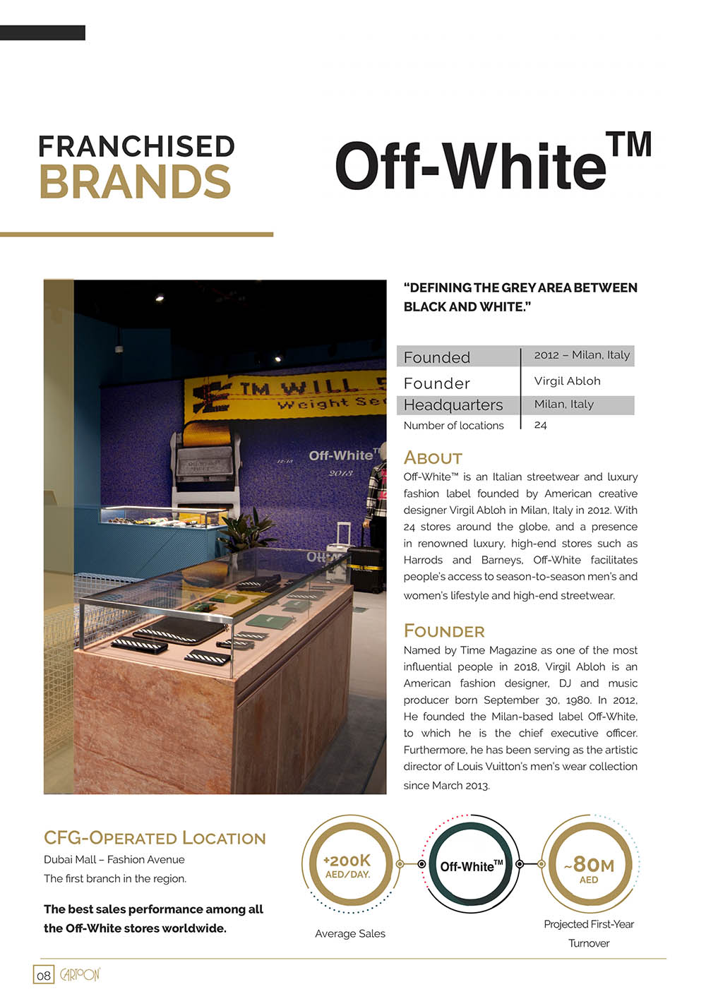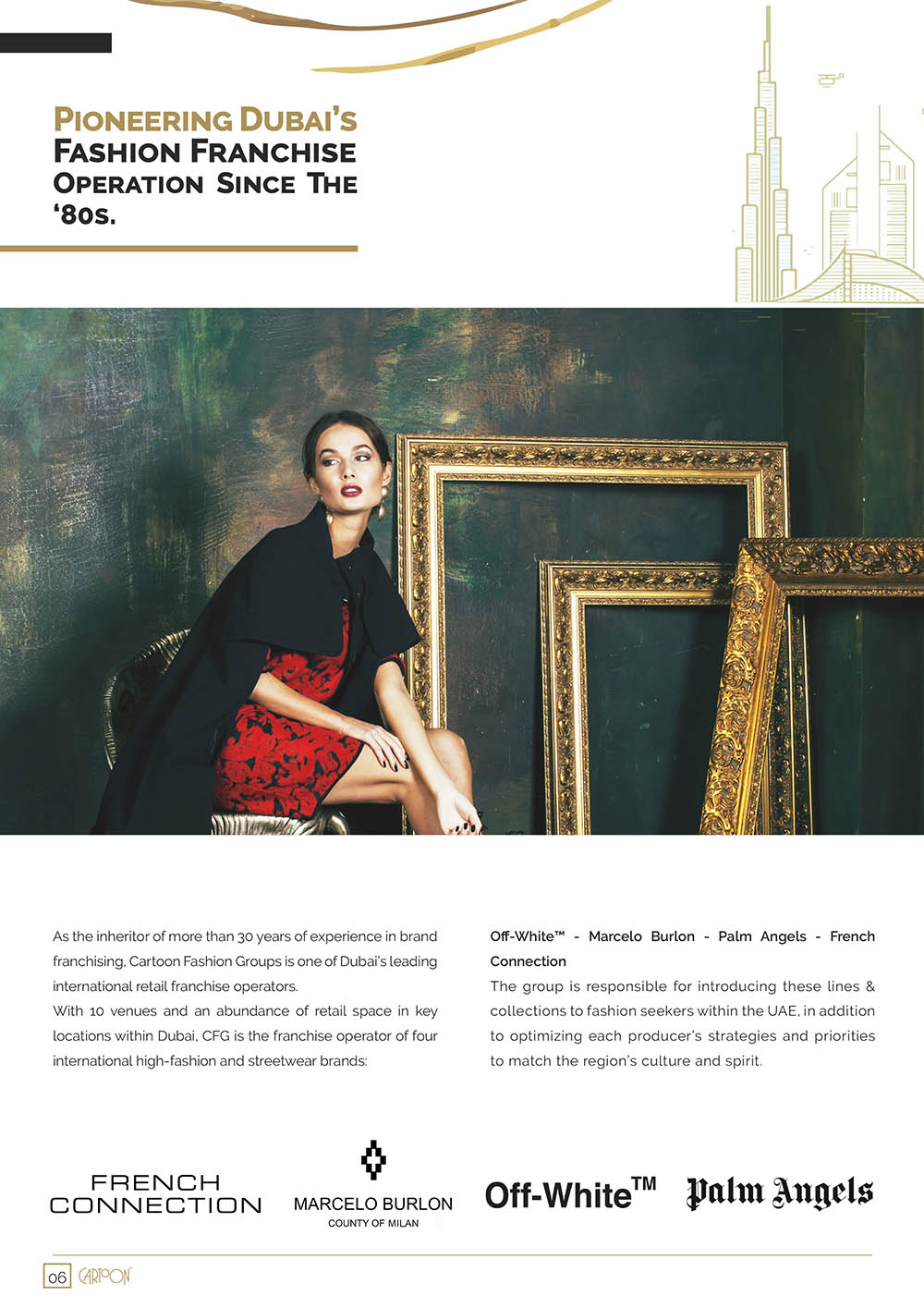 Cartoon Fashion Groups (CFG Groups) is one of Dubai’s leading international retail franchise operators. With 10 venues and an abundance of retail space in key locations within Dubai, CFG is the franchise operator of four international high-fashion and street-wear brands: