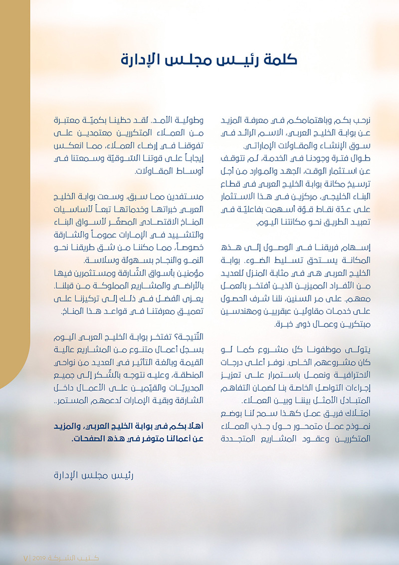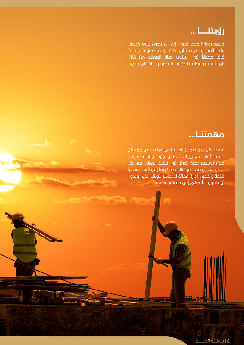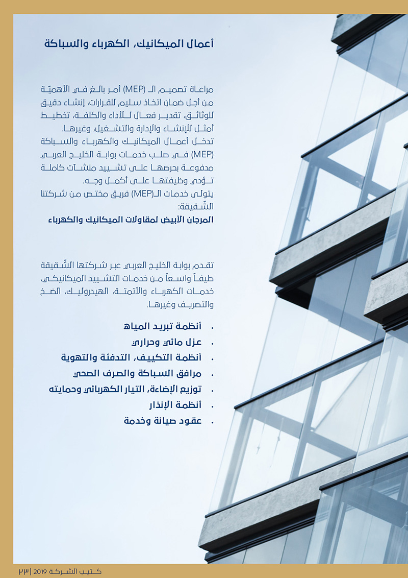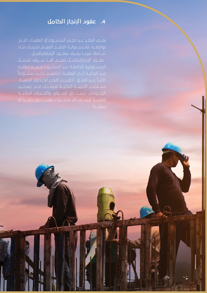 Gulf Contracting required the aid of a talented agency to develop a suitable profile, both in Arabic and English. Their main focus was for the profile to be educational and stand out as informative and engaging. It was imperative for Gulf Contracting to entrust this task to someone capable of maintaining a professional level of service while also working closely with the team at Gulf Marketing to ensure all the points they wanted to send across are properly detailed in the final profile. After consulting with several agencies and viewing their proposals and provided samples, Gulf Marketing entrusted this task to the team at UCT.
